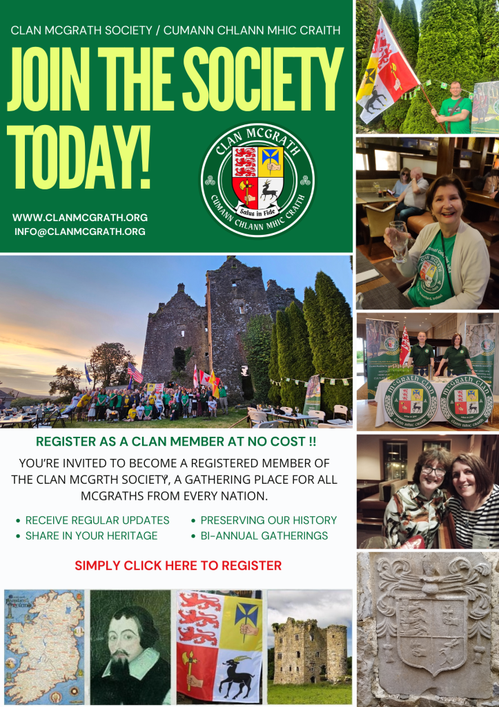 The McGrath Clans of Thomond and Ulster are registered clans of Clans of Ireland – Finte na hÉireann 2025